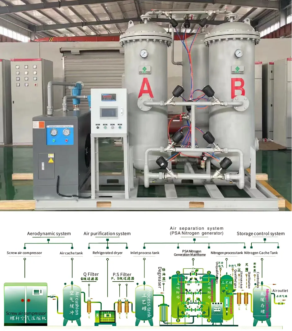 يمكن أن تستخدم معدات النيتروجين السائلة الصغيرة عالية النقاء التدفق إلى الأمام والعكس ؛ تُستخدم طرق تنظيم العمليات المتعددة مثل البرج الفردي والبرج المزدوج لتلبية متطلبات مستوى الضغط المختلفة للعملاء. يمكن للجهاز بأكمله اعتماد نظام DC أو نظام PLC